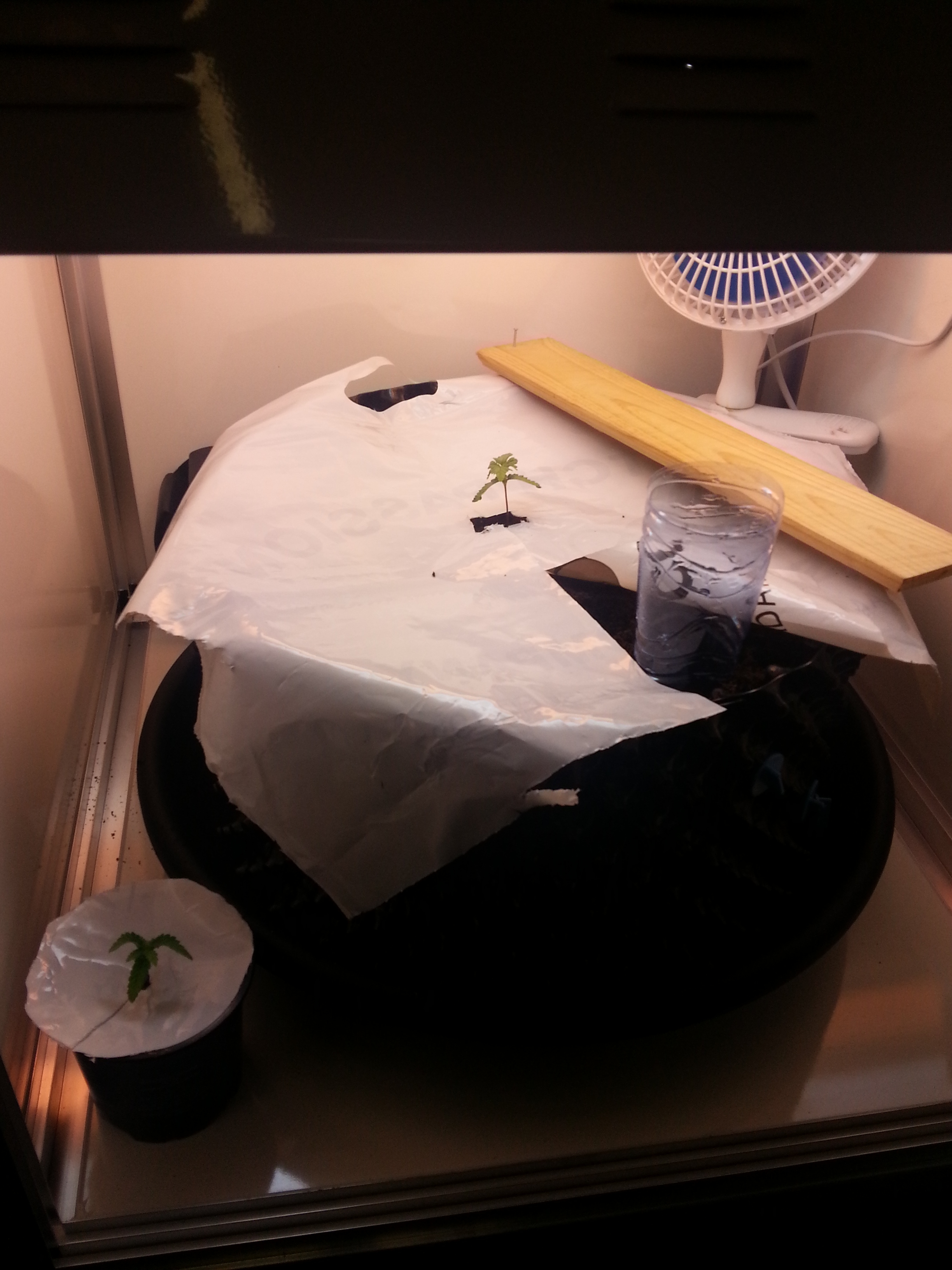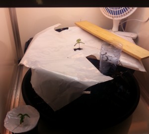 De afgelopen week was de tweede week uit het leven van drie The Ultimate plantjes die ik in de kweekkast had laten ontkiemen. Om voor een beter lichtspectrum en betere temperatuur in de kast te zorgen, had ik tijdelijk twee lampen uitgeschakeld. De volle 220 Watt was nog niet nodig en door twee bloeilampen uit te schakelen hield ik 1 groei- en 1 bloeilamp over (de kweekkast komt met 3 bloeilampen en 1 groeilamp).
