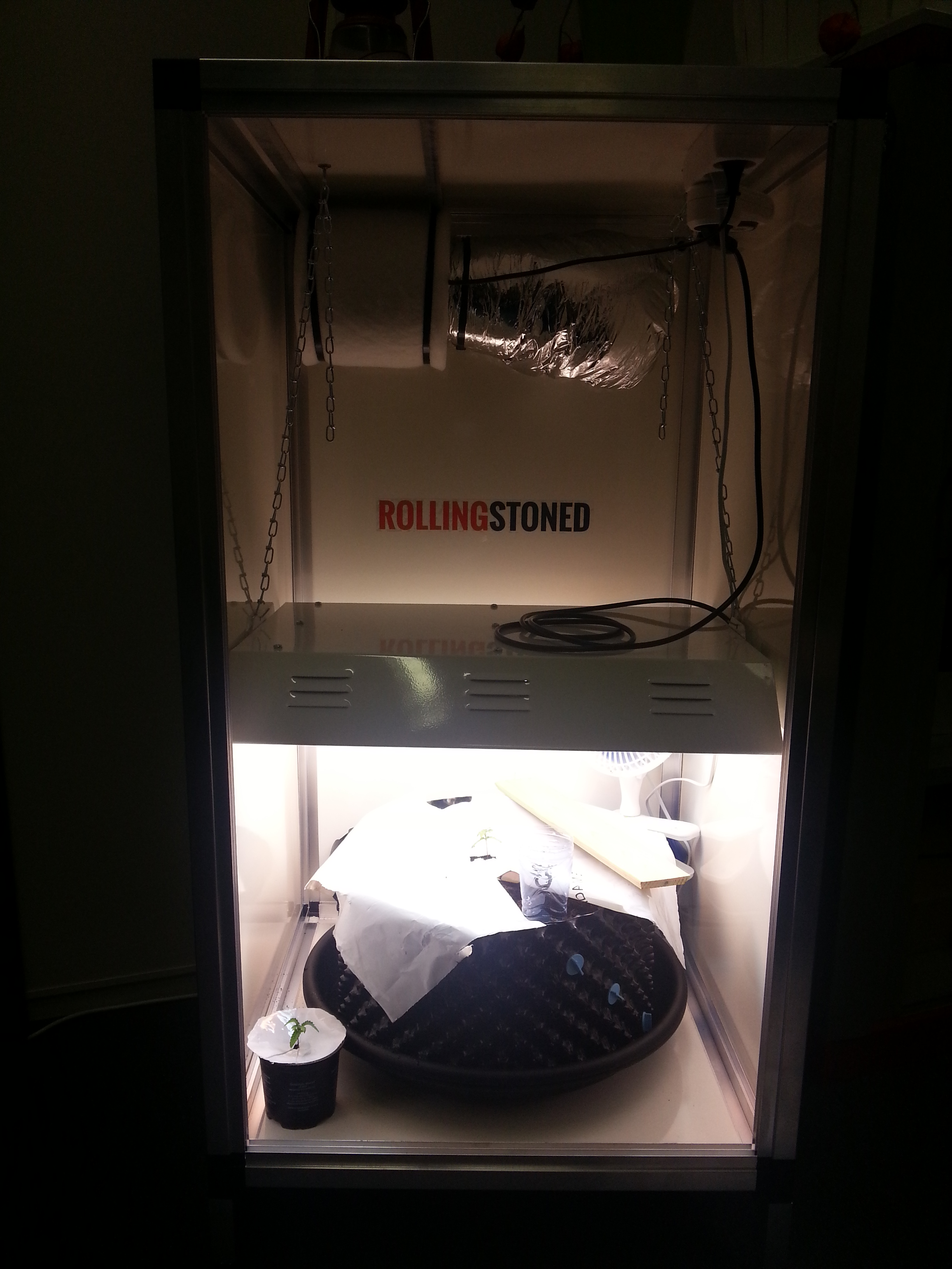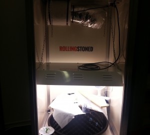 Als Dokter groen test ik zoals jullie weten de nieuwe kweekkast van RollingStoned. Dat is een compacte en stijlvolle kweekkast voor 1 plant die je in principe gewoon in je woonkamer kwijt kunt. Er zit een afzuiger en koolstoffilter in zodat je geen last hebt van geur, en er hangt 220 Watt aan CFL (TL spaarlampen) verlichting in om de plant lekker te laten groeien. En bloeien!
