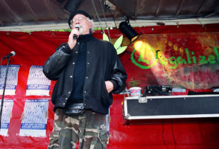 Levende legende John Sinclair tijdens Legalize 2005 in Amsterdam, samen met Alan Dronkers (rechts) en Joep Oomen…