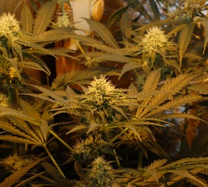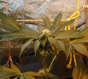 De Medical Kush voor mijn bevriende cannabispatiënt ziet er goed uit, ze heeft mooie topvorming en glanzende bladeren. Ook haar heb ik gediefd en dat zie je. De bloemen die er nu aangroeien gaan hard, echte puppy-power laten we maar zeggen. De cyclus zit nu in week 5 en voor de Sensi Skunk planten moet het nu gaan gebeuren want die hebben een bloeiperiode van 7 weken en hebben dus nog maar drie weken te gaan (inclusief week vijf). De Jack F1 gaat voor tien weken en heeft dus nog even de tijd, en dit geld ook voor de Medical Kush. Maar ik heb geen stress want ik heb nu een droogkast hehe en kan nu alles rustig z’n gaan laten gaan. Ik is Happy 🙂