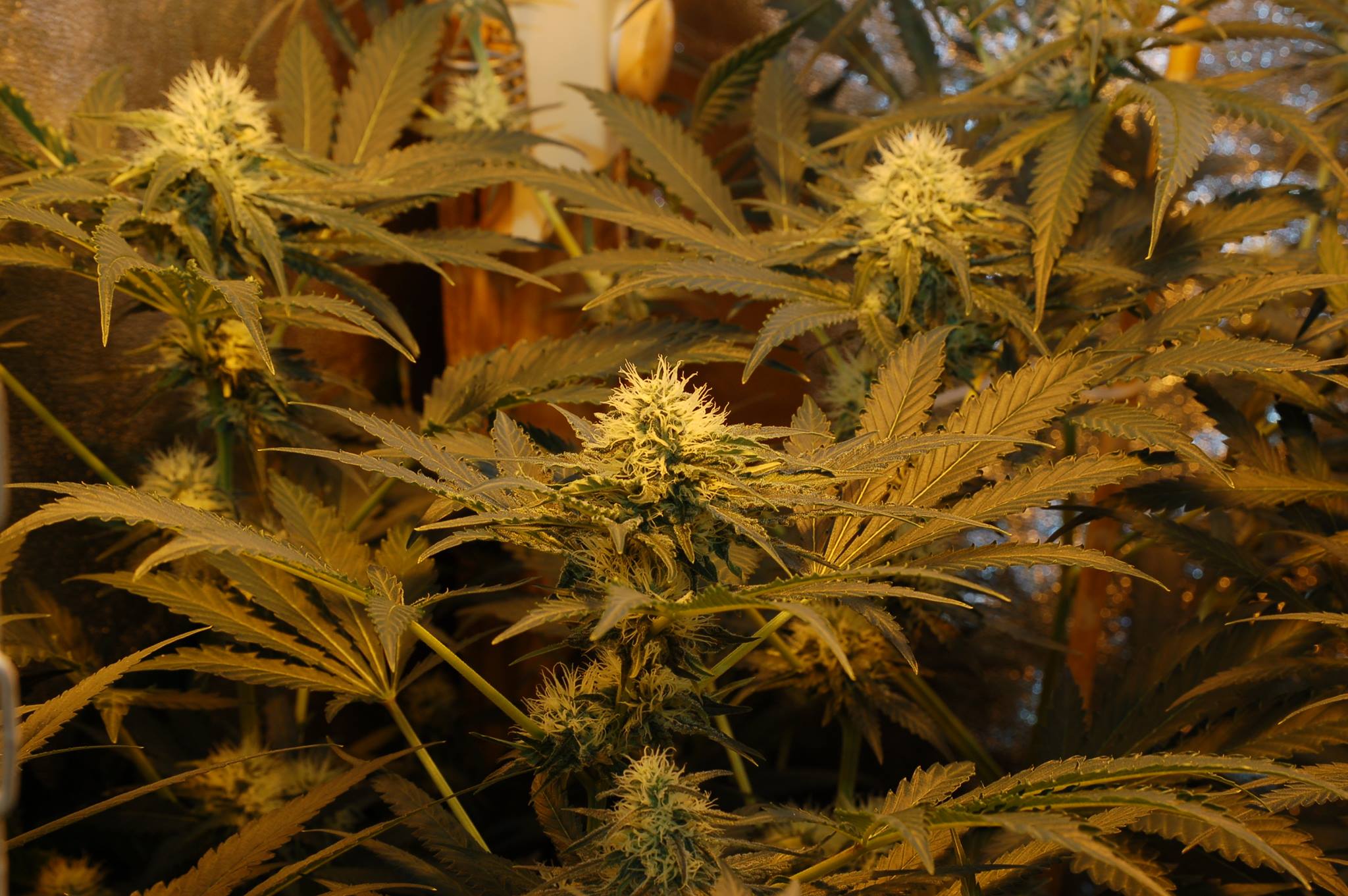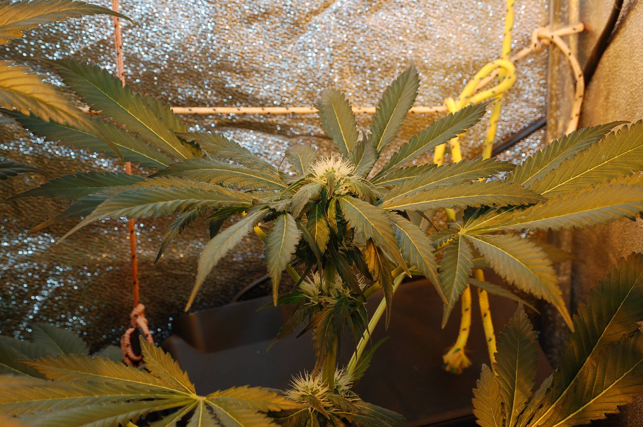Sensi Skunk. Rechts zie je een paar van de 16 toppen die na het toppen aan de planten groeiden