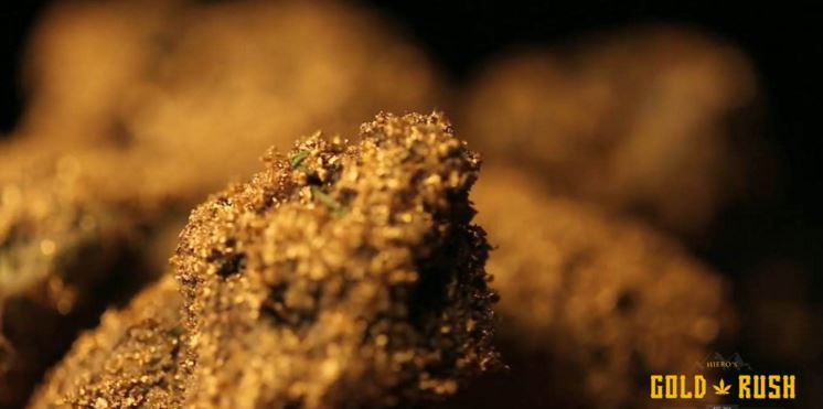 Eén van de cannabisbedrijven in Californië staat op het punt om de gouden wiet te lanceren. In navolging van de echt gouden vloeitjes en Caviar Gold (toppen die bedekt zijn met een goudgele kieflaag) komen ze morgen, 12 februari 2016, met Hiero’s Gold Rush op de markt. Designerwiet met 24 karaats goud erin. Het spul ziet eruit zoals je zou verwachten, als schitterende gouden buds dus.