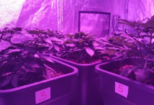 Vier weken in de groeifase en het ‘volwassen’ uiterlijk van de ladies lijkt ons toch wel voldoende om door te gaan naar de volgende stap: 12/12. Vanaf nu genieten onze meiden elke dag van 12 uur Californische zon en 12 uur welverdiende rust. Ook hebben we de switch op de SolarStorm 880 omgezet van ‘Veg’ naar ‘Bloom’, hiermee verandert het spectrum van het licht. Bij groei konden onze vijf Lemon Haze lades genieten van meer blauw licht en minder van rood licht en zijn de LED-dioden minder krachtig in vergelijking met de bloeifase. Daarin absorberen onze vijf dames meer rood licht en krijgen meer van de benodigde lichtintensiteit mee.