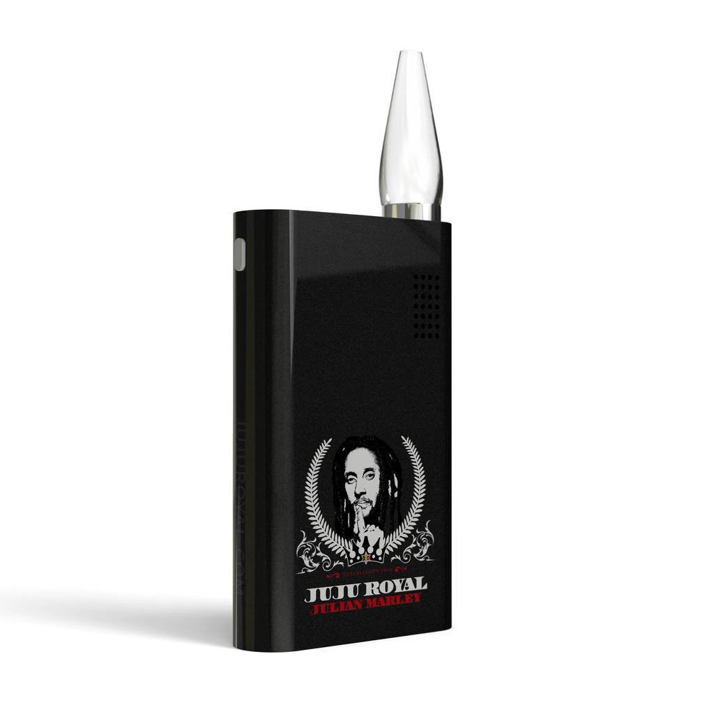 Met de producten en apparaten van JuJu Royal richt hij zich op ‘cannabis lovers met Rastafari idealen en ideeën’. Julian nodigt ons allemaal vriendelijk uit: “Free Up Yourself”. Net als de rest van de familie ruikt deze Marley-nakomeling kansen (geld zeg maar) in de snel groeiende legale cannabisindustrie. Zo komt Julian bijvoorbeeld met een draagbare, navulbare vaporizer, geschikt voor vloeistoffen, olie en concentraten. De perfecte oplossing ‘for taking the vapelife on the go’, aldus de Marley-telg die minstens 250 puffs belooft per pen. Met een prijs van rond de 50 dollar mag je hem bovendien gerust een prijsstunter noemen ook in het vaporizerveld. Voor liefhebbers van wiettoppen – flower tokers – komt Julian Marley met de JuJu Box op de markt. Een vaporizer met een batterijduur van 2,5 uur, dus daar heeft zelfs een doorgewinterde rastafari wel genoeg aan voor 1 dag(deel).