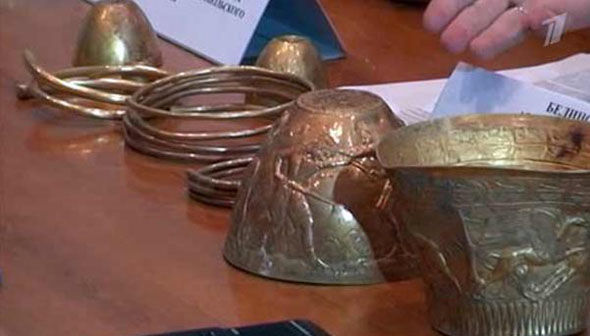 De twee gouden vazen a.k.a. oerbongs zijn bewijsbaar gebruikt voor drugsrituelen, stelden wetenschappers vast. In de voorwerpen zat namelijk een dik, zwart residu dat bij nader onderzoek uit cannabis en opium bleek te bestaan. Naast de 2 bongs werden er nog meer gouden voorwerpen gevonden op de plek in de Kaukasus in Zuid-Rusland: drie gouden kopjes, een zware vingerring, twee halskettingen en een gouden armband (zie openingsfoto). Het moge duidelijk zijn, deze kostbare spullen behoorden niet toe aan het gewone klootjesvolk onder de Scythen maar aan de koninklijke familie!