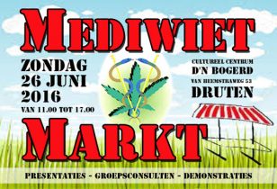 naaktOp 26 juni is het in Cultureel centrum d’n Bogerd in het Gelderse Druten zover: de eerste Mediwiet Markt. In de theaterzaal geeft Wernard Bruining tekst en uitleg over wietolie en houdt groepsconsulten opdat anderen er van kunnen leren.