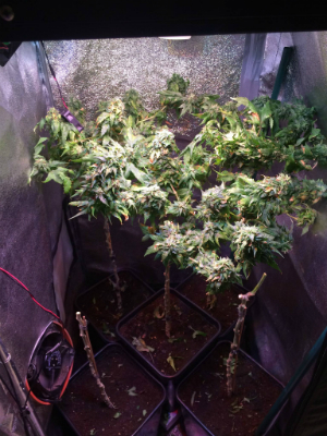 Hallo kweekvrienden, vorige week hebben jullie kunnen zien dat de Duckfoot plantjes bijna rijp voor de oogst waren en er eigenlijk vreselijk lelijk uitzagen. Ik heb de 5 lelijke eendjes op Dag 63 van de bloei afgeknipt, ze hangen nu te drogen. Ik had deze Duckfoot sinds vorig jaar in bezit, maar ik ga toch op zoek naar een THC-rijker exemplaar. De THC-productie van deze 5 planten vond ik ondermaats, en dus is het zonde van m’n tijd om die plant nog langer te houden. Ik ga wel op zoek naar een beter Duckfoot exemplaar, maar dat is voor de toekomst. En dat brengt me gelijk op de nabije toekomst en de nieuwe planten die jullie de komende weken hier kunnen bewonderen.