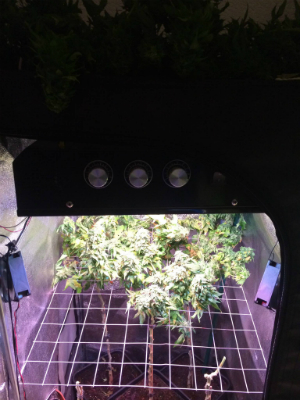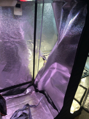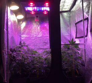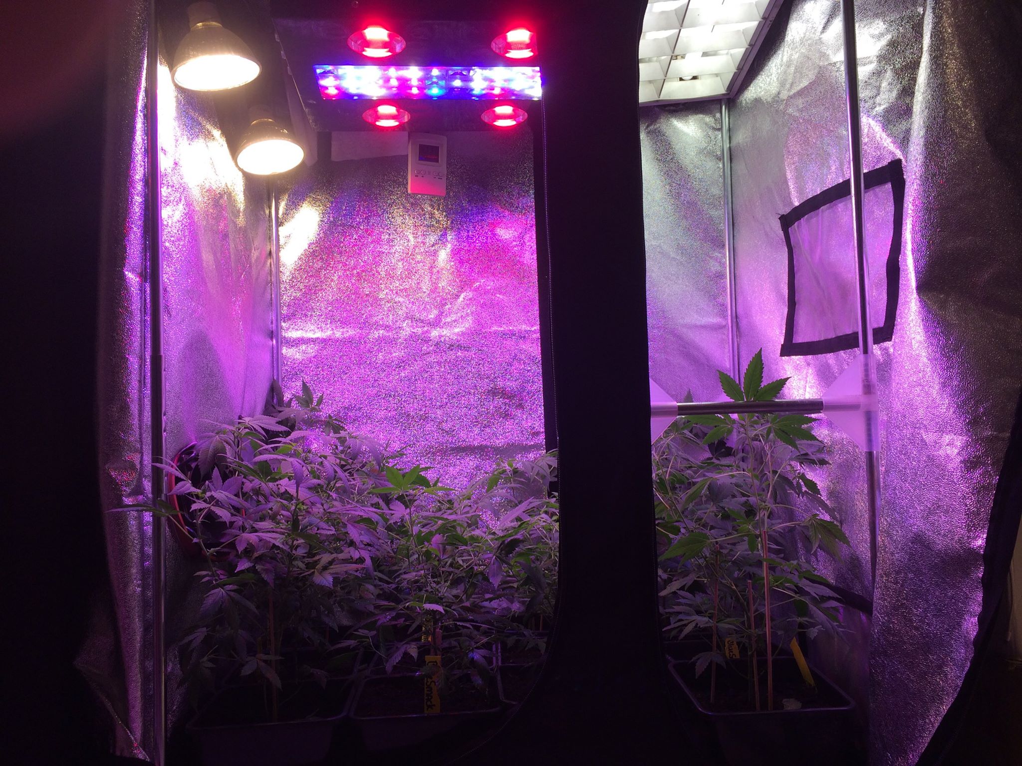 Zo gezegd zo gedaan, een tijdje terug heb ik dus 2 stekjes van de BlueSmack in bloei gezet om eens te kijken of de wiet echt blauw werd. Nee dus. De wiet zelf is niet blauw maar paars maar wederom is de kleur van de voorbloei wel blauw. De toppen zijn prachtig paars en de wiet smaakte heerlijk! Tijdens de Duckfoot kweek heb ik in het groeihokje hard gewerkt en wat stekjes gemaakt van het BlueSmack moederplantje. Die stekjes zijn nu mooie plantjes geworden en mogen dus onder de paarse Horticoled lamp gaan bloeien. De lodge90 kweektent heeft 3 compartimenten maar voor deze kweek heb ik er 1 grote ruimte van gemaakt. Zo komt de ledlamp meer tot z’n recht en zo hebben de plantjes ook meer ruimte om mooie paarse golfballen van toppen te produceren. Geniet van de foto’s en tot volgende week.
