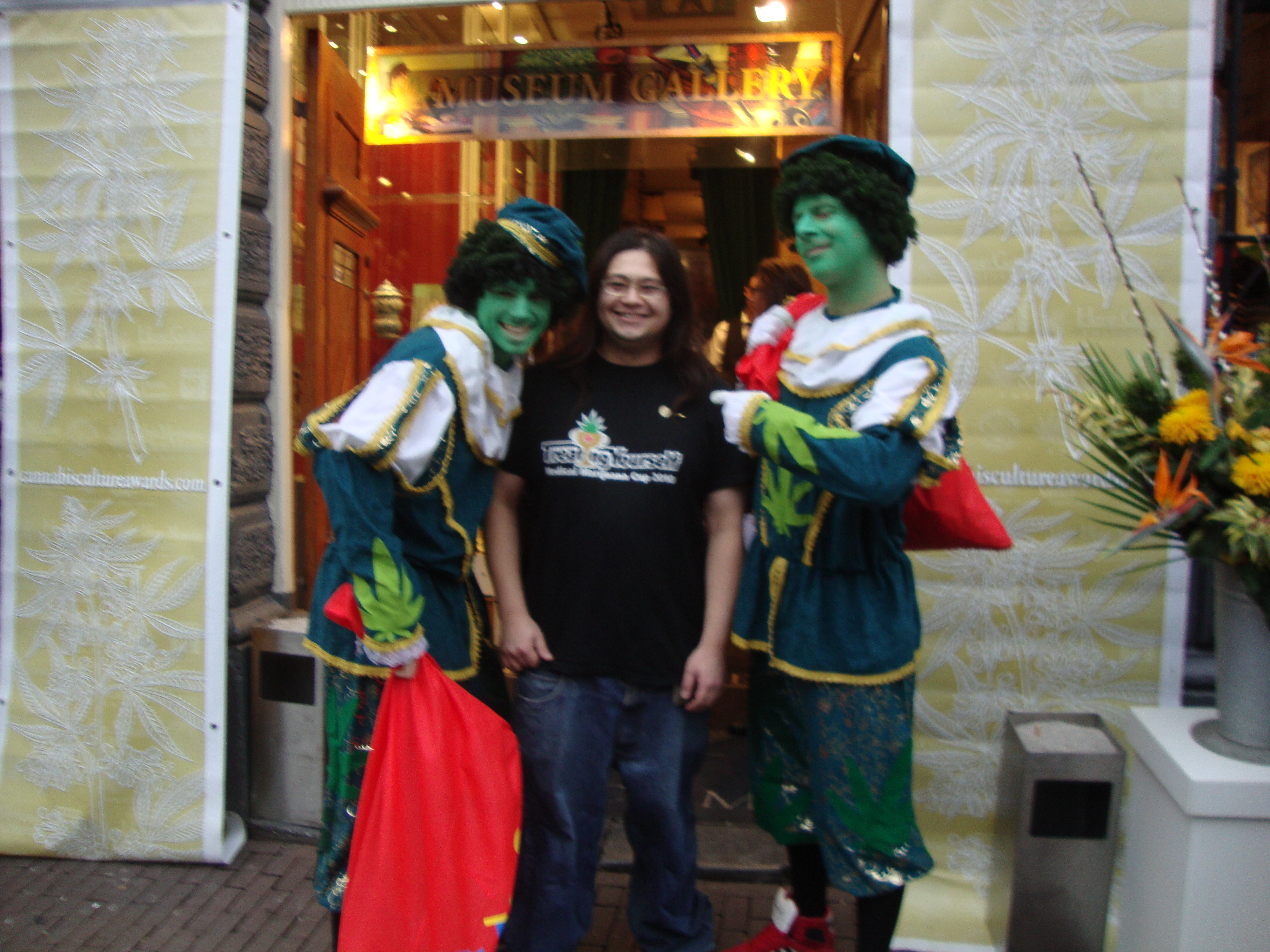 Marc & Jodie Emery en Howard Marks kregen de prijzen uitgereikt op het podium. Alle gasten – en het was bommetjevol binnen – werden welkom geheten door een bijzonder fenomeen: Wiet Pieten. Waarmee we die stomvervelende landelijke discussie over de juiste kleur van de Pieten ook voorgoed kunnen sluiten 😉