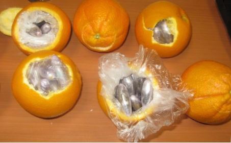 En deze man had nog zo zijn best gedaan om op originele wijze de douane te slim af te zijn. Uren en uren moet hij namelijk bezig zijn geweest met het voorzichtig openmaken van sinaasappels, om vervolgens het vruchtvlees te vervangen door een ander, zij het illegaal, gezond product: Marokkaanse hasj! Liefst 263 condoompjes wist hij in sinaasappels te verstoppen en het was hem bijna gelukt ook. Maar toen hij zijn bagage moest laten scannen viel het geniale plan toch in het water…