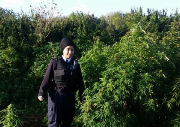 “Kingston politie erbij geroepen voor een paar wietplanten. Wij hebben een bos gevonden!” Aldus de opgewonden standjes van de Metropolitan Police in Londen. Vlakbij een studentencampus werd dit voetbalveld vol cannabisplanten opgerold…