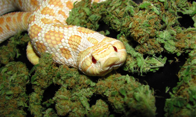 Het onheil is nog niet voorbij, want aangemoedigd door deze spullen voert de politie een doorzoeking uit. Daarbij vinden ze onder de passageiersstoel nog enkele zakken wiet en aldus agent Muldoon “what we believed to be methamphetamines“, ofwel crystal meth. “We vonden ook nog diverse drugsparafernalia en – kan je het geloven – een levende python!”