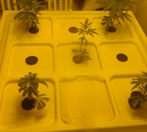 Het is moeilijk om jullie de worteltjes te laten zien omdat ze zouden beschadigen als ik ze door de kleine opening omhoog zou tillen. En na het algen gedoe neem ik liever geen risico meer met deze planten. De twee foto’s hierboven zijn dan ook genomen bij het schoonmaken van het systeem voor de komst van de nieuwe stekken. Maar aan het einde van de cyclus zal ik de wortels laten zien, tegen die tijd zal het een enorm worteltapijt zijn in de bodem van het Growtool systeem want ik ben van plan om deze dames lekker groot te laten worden. Voorlopig zal ik de planten daarom nog 18 uur licht geven zodat ze lekker lang kunnen groeien.