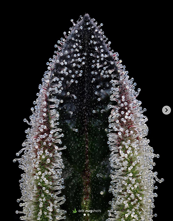 We hebben het al vaker over de schitterende macro’s van Eric ‘Nugshots’ Christiansen gehad, want er zijn maar weinig fotografen die het hem nadoen. Eric zoomt zó ver in op cannabis, dat zijn foto’s er bijna uitzien als surrealistische landschappen. Om de foto’s zo scherp te krijgen zijn in elke foto van Erik tientallen of soms zelfs honderden foto’s verwerkt. Zijn werk is een waar technisch (én botanisch) hoogstandje.