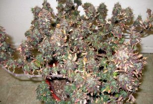 Let, vooral als je met gefeminiseerd zaad werkt, in de bloeifase goed op eventuele mannelijke bloei in de toppen. Herma’s kunnen er op twee manieren uitzien: ze kunnen mannelijke takken hebben, of een enkel mannelijk bloempje tussen de toppen. Vooral dit laatste kun je gemakkelijk over het hoofd zien. Let er goed op of er niet ergens een soort banaanvormig bloempje groeit en verwijder hem direct voordat ie open gaat en je toppen bezwangert! Voor de zekerheid moet je wellicht de hele top verwijderen, aangezien een enkele mannelijke bloem je hele oogst kan verpesten.