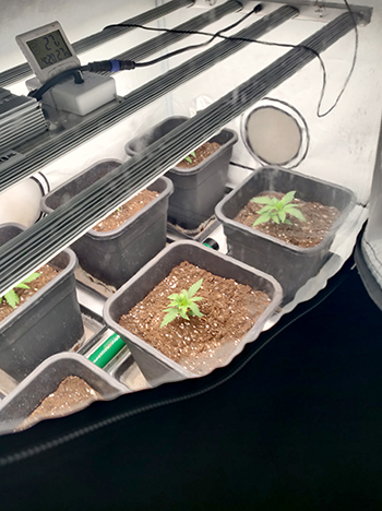 Het voorgroeien doen wij in een kleine Green Qube tent met een G-LEDS bar van 90 Watt full spectrum, en geven we ze dagelijks 2,5 tot 3 milliliter water met Rootstarter.
