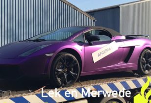 Van een kale kip kun je niet plukken, maar van een werkloze Gorkummer wél en dus werden de auto’s op de politieoplegger getakeld en weggereden richting Domeinen. Wie weet kunnen we het paarse snelheidsmonster later nog kopen op zo’n altijd gezellige veiling…