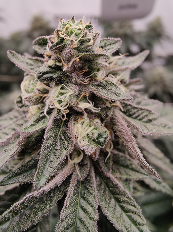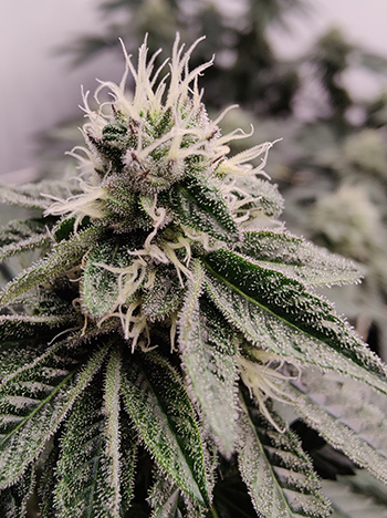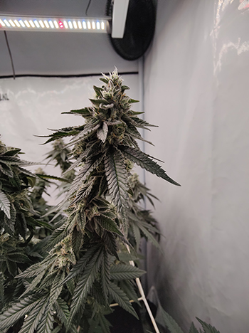 Twee weken sinds ons laatste verslag, en de Apple Fritters staan inmiddels 7 weken in bloei. Ze zijn hard op weg naar hun eindstation en we kunnen niet blijer zijn met hoe ze er nu uitzien. De toppen zijn zo hard als stenen en erg plakkerig. Ook de geur die ze afgeven is nu op zijn sterkst en heerlijk om te ruiken. Elke keer als de tent open gaat is het een feestje, en zoals het er nu naar uitziet moeten ze nog een week of drie.