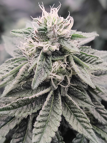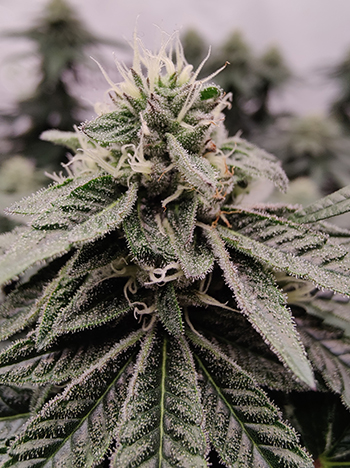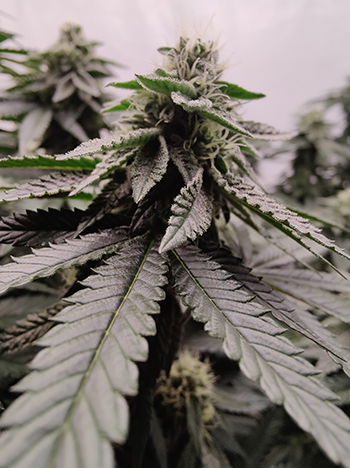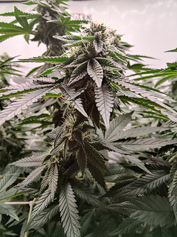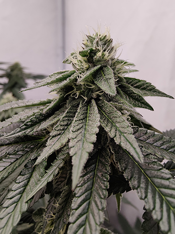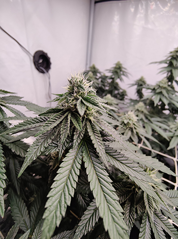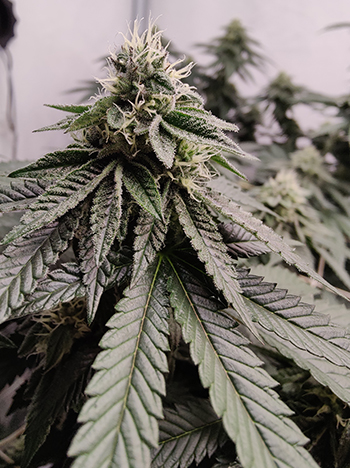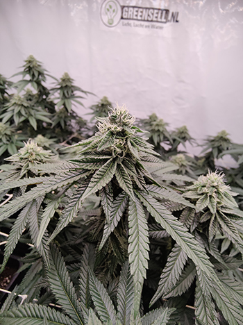De laatste keer waren de dames net aan hun bloeifase begonnen. Nu, twee weken verder zijn ze duidelijk veranderd; het zijn mooie beginnende toppen die zelfs in dit beginstadium al behoorlijk compact en heel plakkerig zijn. De geur die ze verspreiden is heerlijk zoet en daar worden we uiteraard heel vrolijk van.