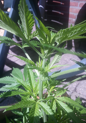 Voorop gesteld dat ik jouw ‘slappe bladeren’ reuze vind meevallen, hoeven slappe bladeren niet altijd te betekenen dat een wietplant te droog staat. Pas als de bladeren ook echt slap aanvoelen is dat het geval. Wanneer een plant niet te weinig, maar juist teveel water heeft, krullen bladeren ook omlaag. Een wietblad komt er dan een beetje als een soort klauw uit te zien. Het lijkt dan wellicht alsof ze slap hangen maar dat is in feite niet het geval, voel in zo’n geval maar eens aan de bladeren. Ze zullen stevig aanvoelen maar krullen omlaag doordat de wortels geen zuurstof krijgen. Het ziet er dan uit zoals op de foto hieronder.