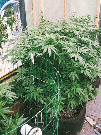 Vorig jaar waren we constant in de weer met touw om onze wietplanten in de gewenste positie te krijgen. Een techniek die goede resultaten oplevert maar die wel veel energie kost en er warrig uitziet. Dit jaar kiezen we daarom voor een stevige kooi. We hebben 11 meter gaas verdeelt in drie stukken van 2,5 meter en een stuk van 3,5 meter. Dit zijn de perfecte afmetingen voor de smart pots die wij gebruiken. Voordelen van de kooi-methode zijn: