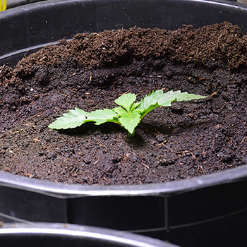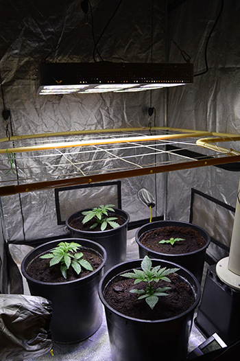 Omdat ik een van de zaailingen per ongeluk met mijn pincet om zeep geholpen had, moest ik een extra zaadje laten ontkiemen. Deze heeft daardoor dus een week achterstand op de rest, maar ze trekt al aardig bij zoals je op de foto kunt zien. Ik denk dat ik de dames nog een week laat groeien en daarna overstap op de bloeifase. Afgelopen week heb ik ze één keer gevoed met Mills Nutrients en ik zie het effect van de voeding. Na het acclimatiseren van hun komst in de tent, zijn ze zich goed gaan ontwikkelen.