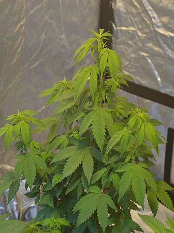 Terwijl ik nog de CBD Compassion en de CBD Kush kweekte, liet ik de Gold Bar Kush planten achter de schermen alvast voorgroeien. Zodoende zitten we nu dan ook al in week 7 vanaf het ontkiemen, en week 2 van de bloeifase. Hier en daar vormen zich al mooie bloemen maar het kan beter eerlijk gezegd. Aan de andere kant is de tweede week van de bloei pas gisteren begonnen.
