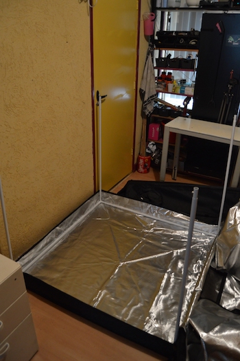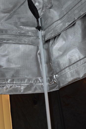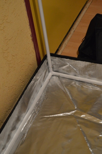 Wanneer je alles hebt dichtgeritst hoef je alleen nog de extra bodem erin te leggen en op de hoeken vast te maken. De tent heeft verschillende openingen voor af- en aanvoer van lucht. In de deuren van de tent zit een handige geurvrije doorkijk, voor een snelle blik op de planten. De makers van de tent hebben er ook een paar handige banden erbij gedaan om daarmee je afzuiger op te hangen. Voor de lamp heb ik nog een paar verstelbare heavy hangers, dat werkt super.
