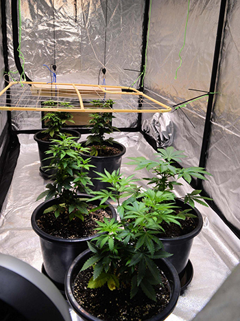 Gold Bar Kush is een THC rijke wietsoort van Spliff Seeds, ik heb de planten achter de schermen alvast voorgegroeid, ze zijn nu vijf weken oud. Afgelopen vrijdag zijn ze verpot en heb ik ze in mijn extra grote kweektent gezet voor de test.