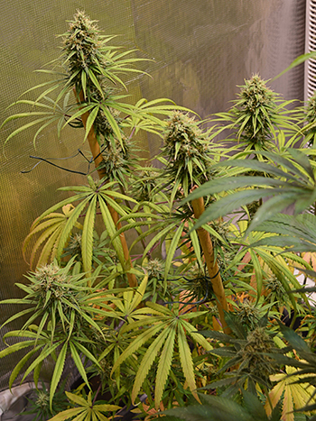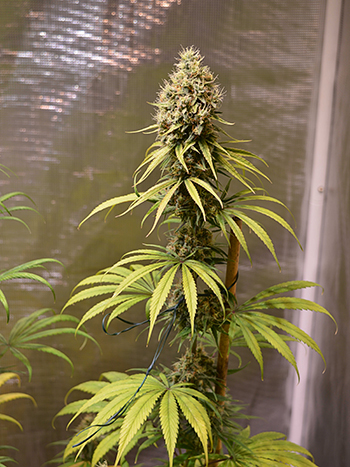 Afgezien van de tripsen maken de planten het eigenlijk best goed. De toppen glinsteren al mooi in het licht van de kweeklamp, en ruiken ook al lekker. De planten zijn een beetje de hoogte ingeschoten maar dat is geen groot probleem want het licht van de HPS Killer reikt tot diep onderin de planten. Ook onderin, op de zijtakken groeien daardoor mooie toppen. Niet zo groot als de hoofdtoppen uiteraard maar mooi compact en prima te roken straks.