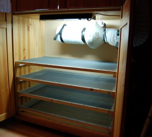 In een oude kledingkast zag ik een oplossing voor mijn probleem. Door de kast in twee ruimtes te verdelen beschik ik voortaan over een aparte ruimte voor iedere fase van mijn medicijn (wiet dus). Boven in de kast heb ik een ruimte om voor te groeien, mijn kweektentje is helemaal gereserveerd voor het bloeien en onderin de kast kan ik de afgebloeide wiet drogen. Zo hoef ik nooit meer voor te groeien of te drogen in mijn medicijntent en kan ik 4,5 keer per jaar oogsten in plaats van maar 3 keer.