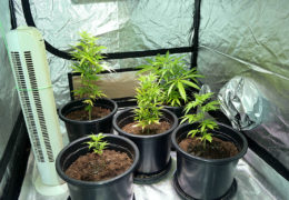 Met twee kweeklampen in één (weliswaar grote) kweektent, loopt de temperatuur al snel te hoog op. Ik heb mijn ventilator daarom op een kruk gezet zodat die de warmte onder de lampen wegblaast. De maximale temperatuur in de tent is daardoor 28 graden, terwijl het bij de potten ongeveer 24 graden is. Idealiter is 28 graden iets te warm maar de buitentemperatuur zal de komende tijd ook weer gaan dalen, dus dat komt vast goed.