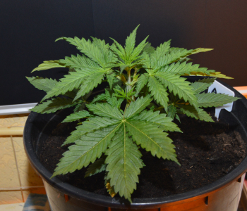 Hallo cannabisvrienden en vriendinnen, ik zit er weer klaar voor. Ik heb een joint op de lip en FunkyTownRadio uit de speakers en dat betekent dat het weer tijd voor een update is. En ik moet zeggen, en dat is boven verwachting, het gaat super! Ik had vorige week gemeld dat de meisjes nog in de groeikast stonden en daar nog wel twee weken zouden blijven, maar ik heb ook gezegd dat je met moeder natuur geen plannen kunt maken. Nou, dat heb ik gemerkt. Zaterdag 5 december zagen de planten er zo goed uit en waren ze al zo ver, dat ik ze in de tent heb gezet onder de HPS lamp. Nog wel op 18 uur, dat wel, maar dus wel een krachtiger zon. En daaar gaan ze geweldig op, kijk maar eens naar de foto’s van vorige week, en vergelijk ze met die van nu. De dames zijn drie keer zo groot en mooi gedrongen en bossig.