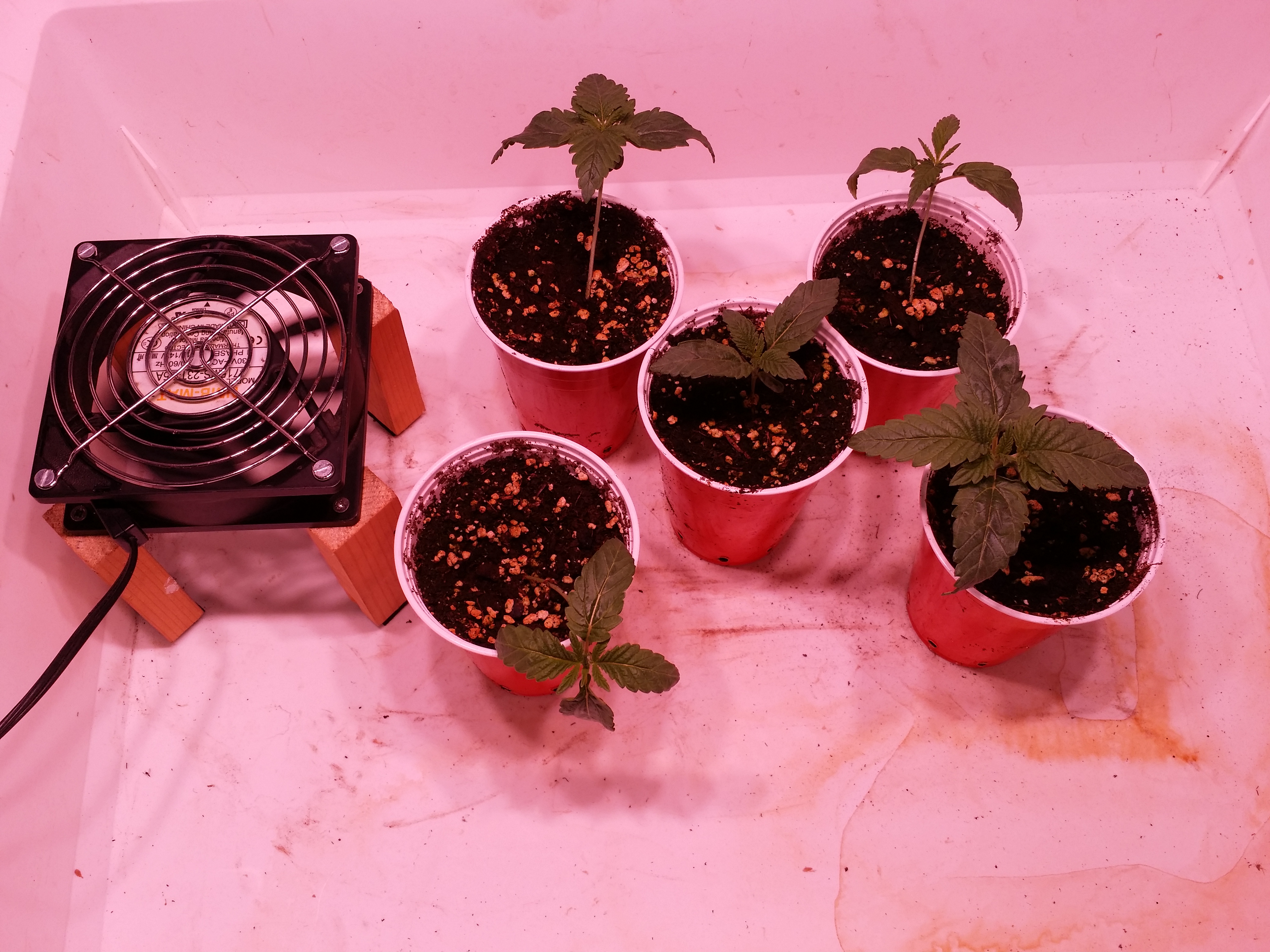 Nadat de OG Double Bubble dames allemaal hun hoofd boven de lightmix uit hadden gestoken, heb ik ze onder de Spectrolight Blast 400 in de tent gezet met het lichtschema op 18/6 ofwel 18 uur licht, 6 uur donker.
