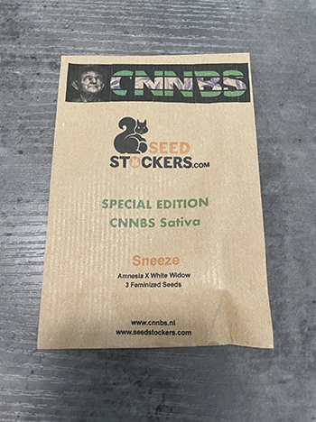 Op aanbeveling van mijn vrienden van CNNBS heb ik gekozen voor de Sneeze. Deze special-edition is een kruising van twee klassieke soorten: Amnesia en White Widow en wordt geproduceerd door Seed Stockers. Omdat ik zowel de Amnesia als ook de White Widow goed ken en beide soorten heel veel trichomen hebben, ben ik heel benieuwd hoe deze kruising het doet.