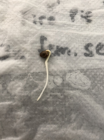 Na 24 tot 48 uur in het zakje check ik de zaden. Ik neem een zaklamp en hou deze tegen het plastiek zakje waar een zaadje is en kijk aan de andere kant. Nu zie ik heel mooi de contour van het zaadje doorschijnen en kan ik zien of er al een wortel is uitgegroeid, zonder dat ik het zakje en het keukenpapier open hoef te doen. Na 3 dagen zijn bijna alle zaden uitgekomen, en hebben de meesten al een witte wortel van 1 cm lengte. Nu is het tijd om hun in potjes met aarde te doen. Maar daarover vertel ik jullie pas in het volgende artikel.