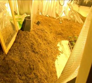 Sommige van de politiemensen droegen zogeheten GoPro body cams. En dat levert een fraai beeld op van hoe je een redelijk klein appartement met 4 kamers moet ombouwen tot een moderne wietboerderij, midden in de stad nog wel. Je hoort ook de stem van de agent, die vuilniszakken met ‘vegetable matter’, loshangende stroomdraden, een extractie-apparaat, hopen losse aarde en verder vooral heel veel planten in verschillende levensfases aantreft in alle vier de kamers.