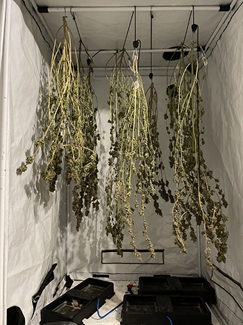 Toen de planten een week te drogen hingen heb ik met succes een ‘knaktest‘ kunnen uitvoeren. Bij het buigen van de takken was een duidelijk ‘knak’ geluid te horen, en waren de takken ook meteen gebroken. Omdat dat gebeurde en de takken niet meer te buigen waren, wist ik dat de planten droog genoeg waren om de buds eraf te halen, en in glazen weckpotten te stoppen.
