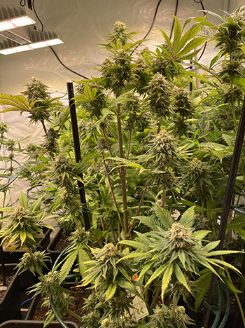 De gezonde groene kleur en de voorspoedige ontwikkeling laten zien dat de SANlight EVO4-120 LED kweeklampen excellent werken. De lampen branden nog steeds op 100% sterkte en hangen op 30 cm afstand boven de toppen van de planten.