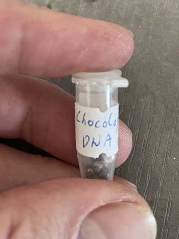 Als laatste soort heb ik voor de Chocolope van DNA Genetics gekozen. Dat is een van hun klassieke wietsoorten, die in het begin heel veel prijzen gewonnen heeft. Ik had nog een pakje dat ouder dan 10 jaar is in mijn vriezer liggen, en ga proberen om deze te ontkiemen. De Chocolope zou een mix van chocolade en meloen (cantaloupe) smaken hebben, en deze combinatie wil ik zelf weleens ruiken en proeven.