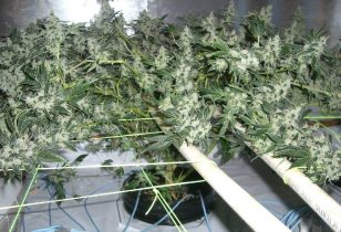 Na de laatste keer ontbladeren aan het einde van de derde bloeiweek, kun je de plant gewoon laten gaan. Ze zal nu het meeste energie steken in het maken van toppen, en alle toppen krijgen voldoende licht en lucht. Je zal zien dat de techniek een hoop dikke toppen oplevert, kijk maar eens naar dit resultaat! De plant op de foto is gedurende haar 11 weken durende cyclus constant van haar bladeren ontdaan, alle toppen zijn dik en geweldig ontwikkeld.