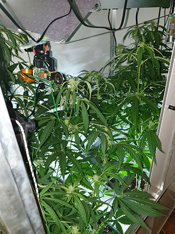 Boven in de G-Kit XL zit het vol met bloemen. De Liberty Haze blijft ook maar de hoogte in gaan. Omdat de dames nu vol in bloei staan, is knippen geen optie meer. Gelukkig heb ik nog wat ruimte om de lamp op te takelen. Ik probeer dit nog wel wat uit te stellen aangezien deze dames nog steeds de hoogte in gaan. Volgende week zal de groei in de hoogte er wel uit zijn.