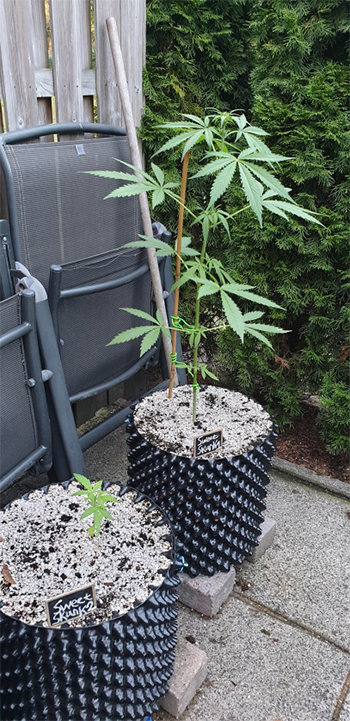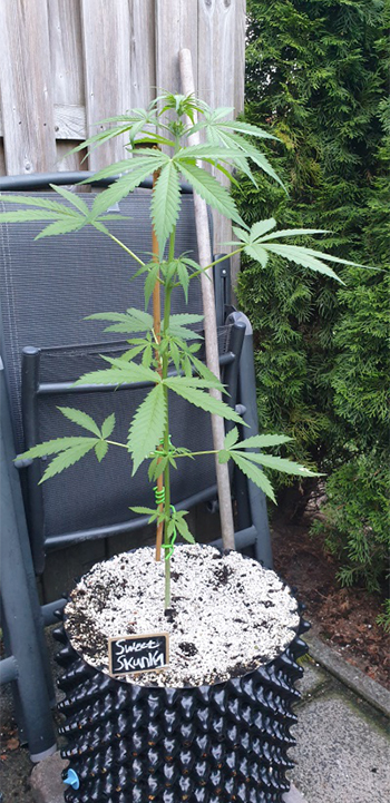 Zoals jullie in mijn vorige blog lazen heb ik 2 Royal Queen Seeds Sweet Skunk zaadjes ontkiemd en in 20 liter Air-Pots gedaan. Na een goede en snelle ontkieming kwamen de plantjes snel uit de grond. Allebei groeiden ze in het begin snel. Eén van de twee planten blijft inmiddels echter behoorlijk achter lopen op de ander.