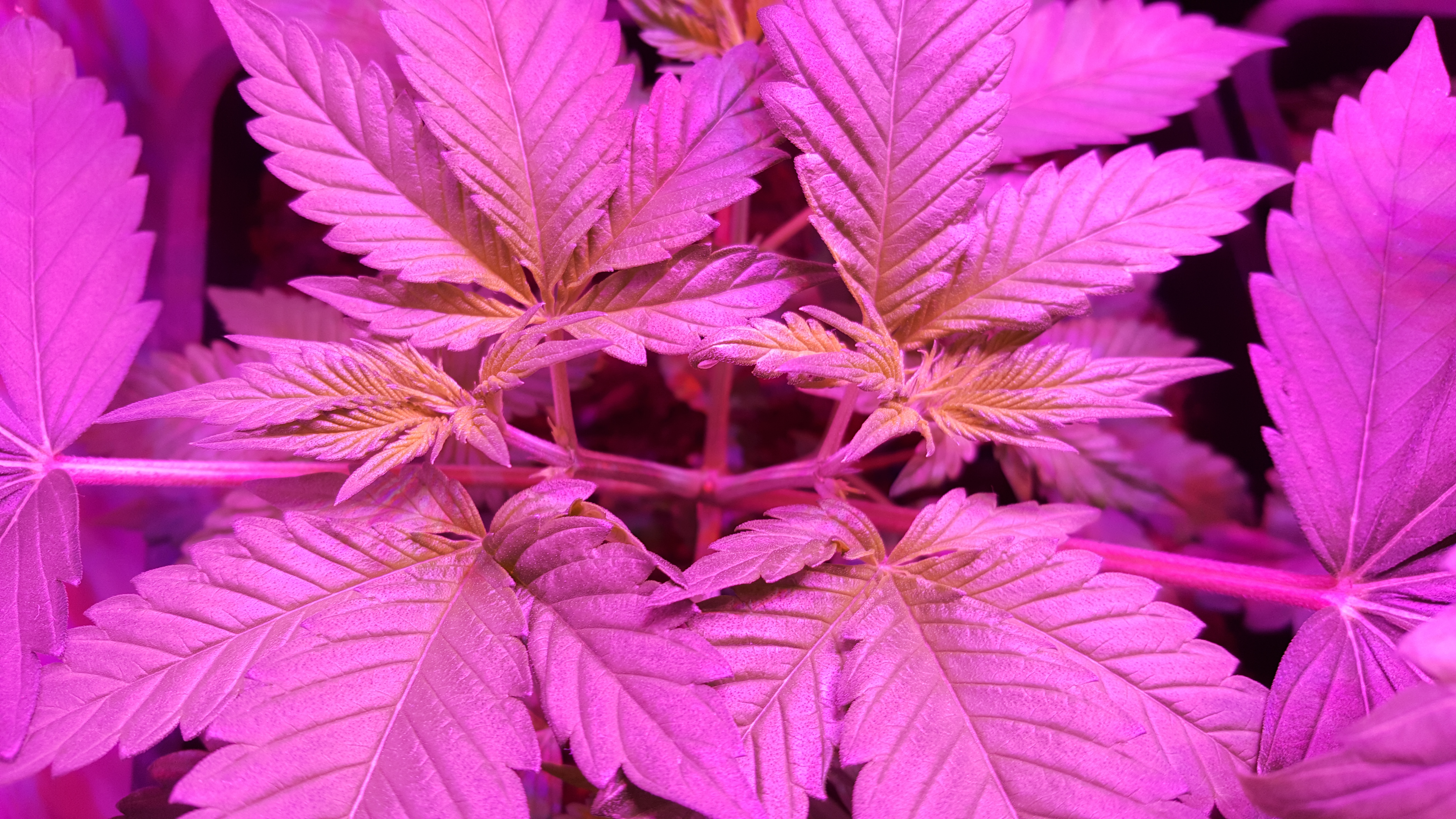 Wanneer je bij wietplanten binnen het dagelijkse aantal lichturen op 14 of minder instelt (12 uur licht en 12 uur donker is gebruikelijk) gaat de wietplant zich voorbereiden op de bloeifase. In deze overgangsfase die gewoonlijk zo’n twee weken duurt zullen wietplanten eerst nog een groeispurt doormaken waarin ze wel twee keer zo groot kunnen worden. Sativa’s hebben de neiging om in deze eerste twee weken van de bloei meer te strekken dan indica’s en aangezien de CBD Compassion duidelijk meer sativa invloed heeft dan de CBD Kush zullen deze planten waarschijnlijk nog een stuk groter uitkomen, we gaan het volgende week zien. Zo staan de vier planten er in ieder geval nu bij, zo’n vijf dagen nadat ik de lampen op 12/12 zette.