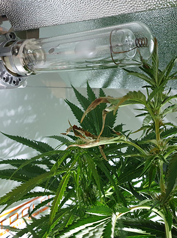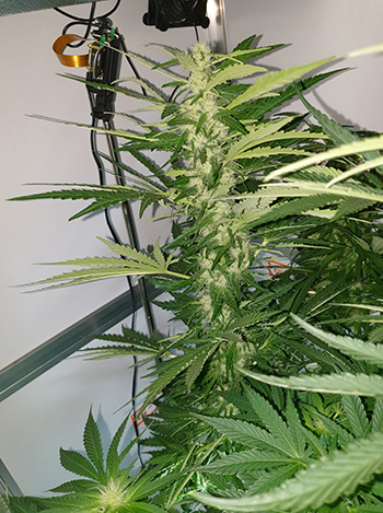 Het grootste verschil tussen de twee plekken is de plaatsing van de ventilatoren. Die hangen rechts onderin, ongeveer 15 centimeter boven de bloempotten, en links bovenin de kweekkast. Of er straks ook verschil in opbrengst is, dat is nog even afwachten. De Mohammed die aan de rechterkant bij de deur staat, heeft me stiekem verrast, alleen niet op een leuke manier. Eén van de onderste zijtakken kreeg een groeispurt en was in twee dagen tijd ruim 20 centimeter gegroeid!