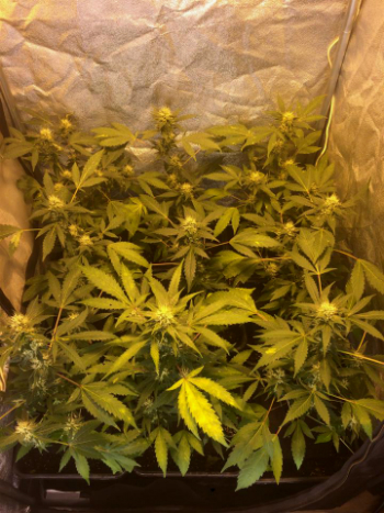 Laat ik beginnen met de planten, zoals je hierboven ziet gaan de toppen al lekker, ze hebben al voorzichtig wat THC gemaakt en er komen steeds meer bloeihaartjes bij. Voor iedere 2 bloeihaartjes die je ziet, is er een calyx (zaadhulsje) die in de laatste periode van de bloei nog flink zullen opzwellen. Hierdoor nemen de toppen in de laatste fase ook nog behoorlijk in omvang toe. Voor deze vijfde bloeiweek ben ik heel tevreden, vooral omdat ik besloten had met 9 dames te starten deze ronde, dat is een mooi aantal planten voor onder de kleine HPS lamp.