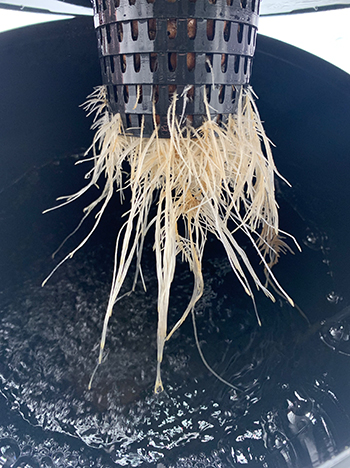 Nu ik het buisje uit de retour van het Flow Hydroponics 3-in-1 Systeem gehaald heb staat het water wat lager. De wortels heb ik naar achteren begeleid zodat ze verder kunnen ontwikkelen en niet zo snel in de retour komen.