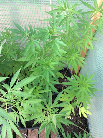 In plaats van het gebruiken van een scrogrek, gaan we de niet-autoflowers dit jaar omlaag binden, we zien dat de dames op deze manier meer licht vangen. Van voorgaande jaren weten we inmiddels ook dat door de dames vervolgens te meerdere malen te toppen, dit een prettig rendement zal opleveren. Mr Miyagi stijl dus! We merken dat door de takken te spreiden de zijtakken meer de hoogte in gaan. Ook worden de toppen lekker vol en blijft de plant uiteindelijk lager. In onze setting zou een scrog simpelweg teveel verlies opleveren. Langzaam maar zeker ontstaat er al meer ruimte in de kas. Hierdoor zullen de dames die erin blijven uiteindelijk alle ruimte tot hun beschikking krijgen. We zien elke paar dagen een enorm verschil. De temperatuur ligt gemiddeld een graad of 7 hoger, dus elk straaltje zon wat tussen de regenbuien door op het dak valt zorgt voor groei. Deze planten hebben we dit keer niet uitgebreid beschreven, maar komen in ons volgende verslag aan bod. Wel hebben we er een aantal foto’s bijgedaan om jullie de extreme groei (in slechts (2 weekjes!) te laten zien.