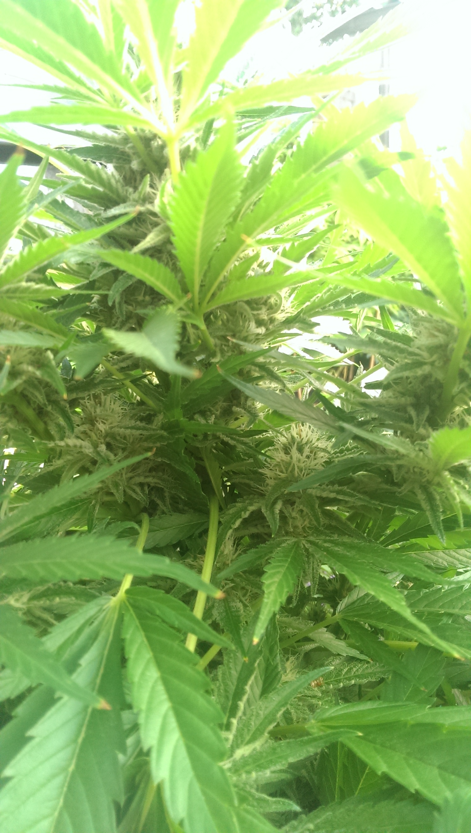 Inmiddels heb ik ook een karretje moeten maken omdat mijn Power Plant Jose (zo noem ik haar) steeds zwaarder wordt. Ik moet haar tenslotte twee per dag optillen om haar te verduisteren voor de bloei. Nog steeds groeien de trichomen aan en spat de THC werkelijk van de plant. Ik durf haar bijna niet aan te raken omdat mijn handen dan ontzetten naar de THC ruiken. Wat het meest opvalt, is dat diep in de plant de wiet ook gewoon doorgroeit, de hele takken groeien vol. Ik kan u verzekeren dat ik niets anders meer wil dan bubbelen, het is echt fantastisch, de kwaliteit van de wiet is geweldig.