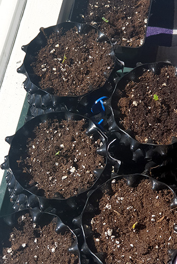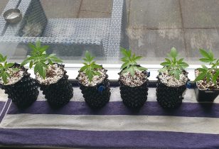 Bij mij duurde dit proces van 9 april tot 12 april. Op 12 april heb ik vijf ontkiemde zaadjes in 1 liter Air-Pots gedaan. De twee overige Sensi Auto Skunks deed ik in kleine 0,75-literpotjes. Na een paar dagen achter het raam, kwamen de zaailingen rond 14 april boven de grond. Daarna ben ik voorzichtig begonnen met het geven van kraanwater en Canna Rhizotonic wortelstimulator (ongeveer 1 milliliter per liter water).